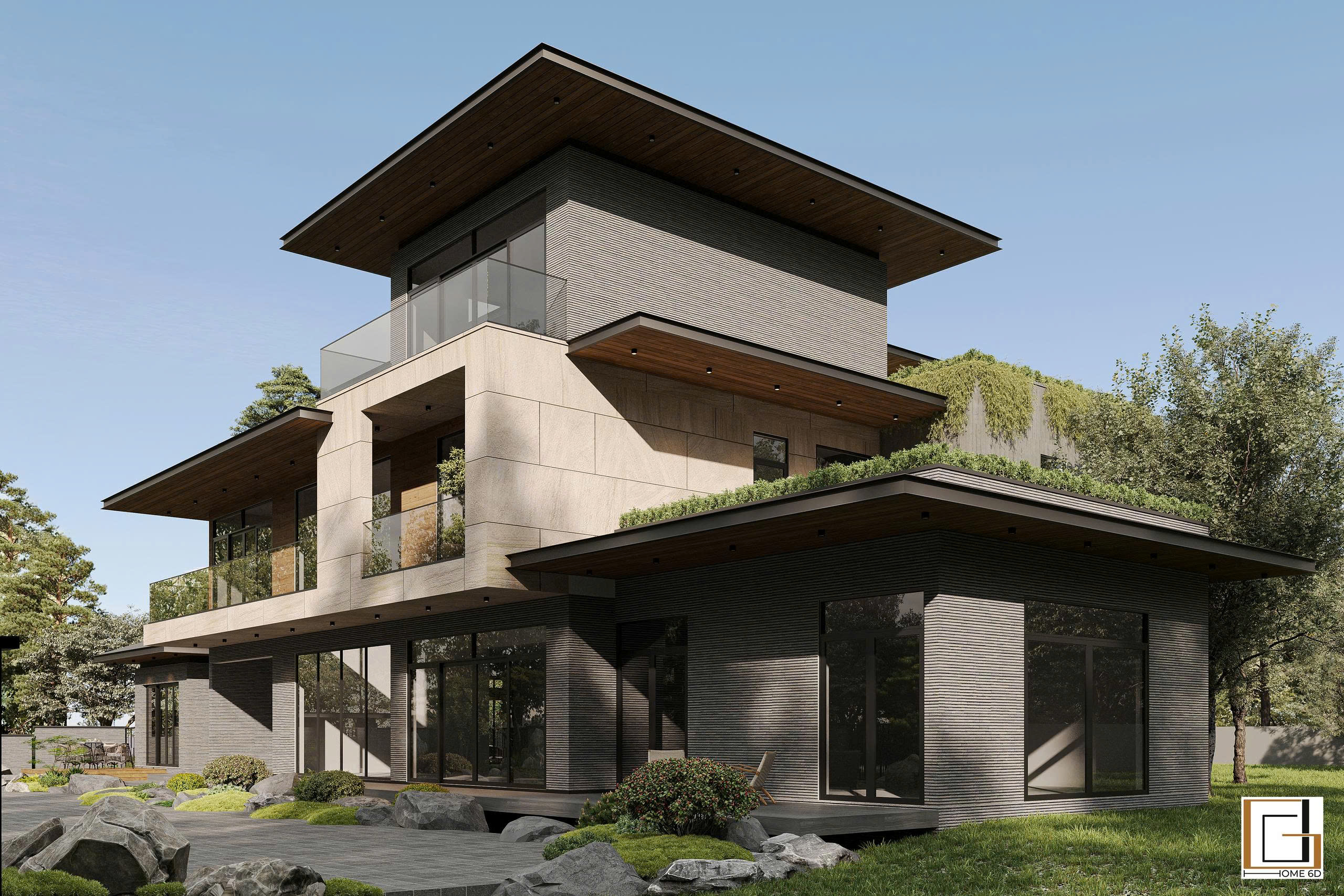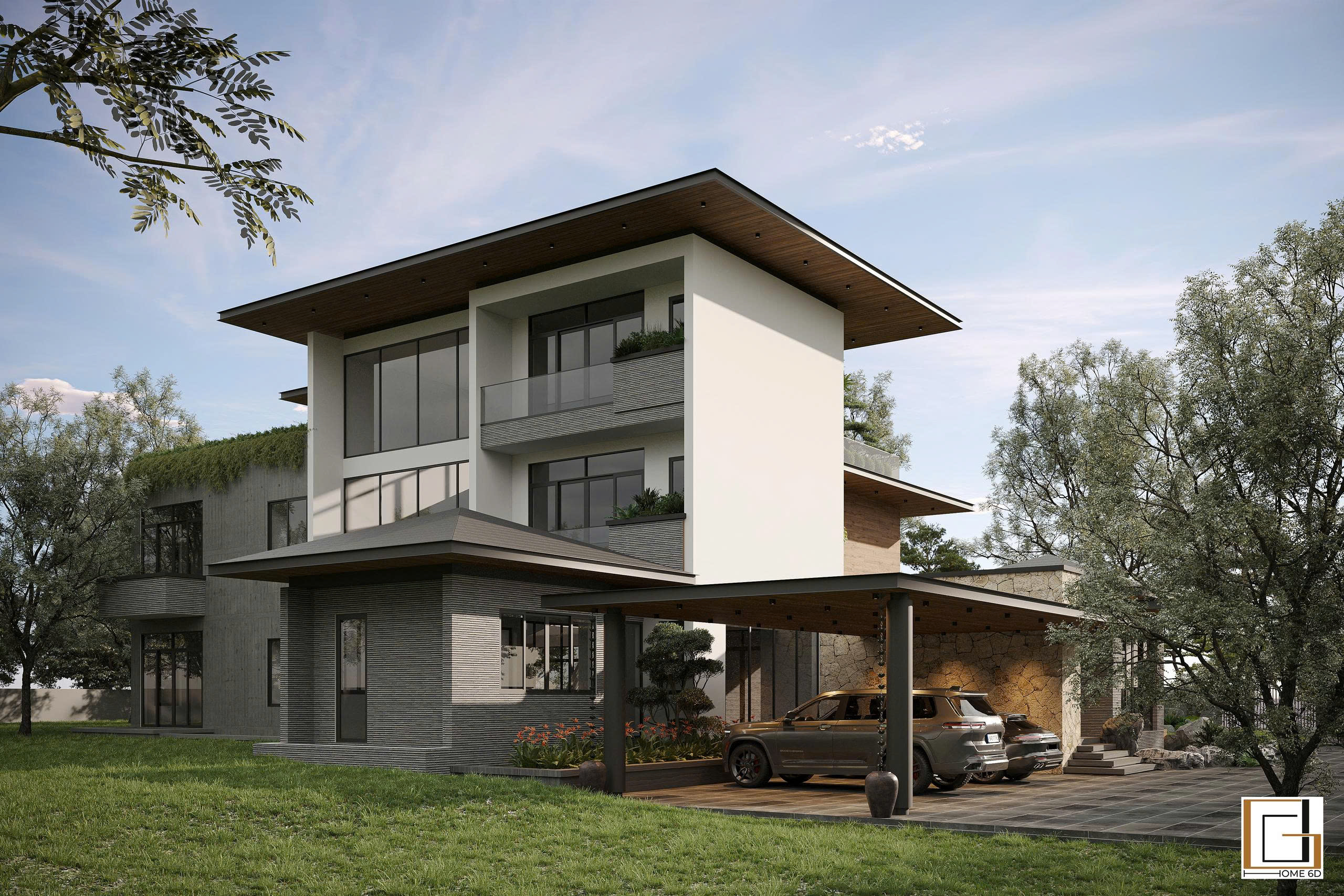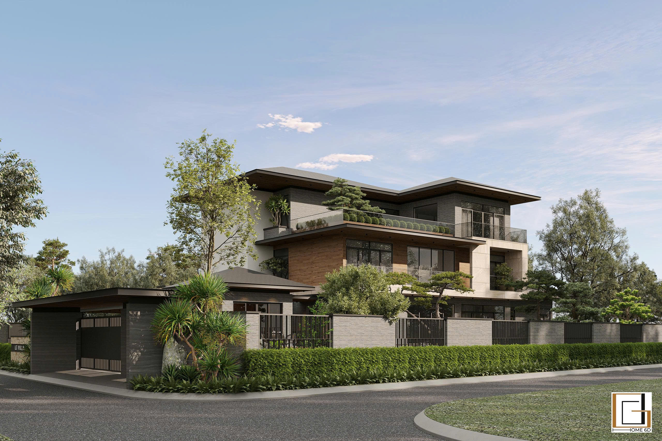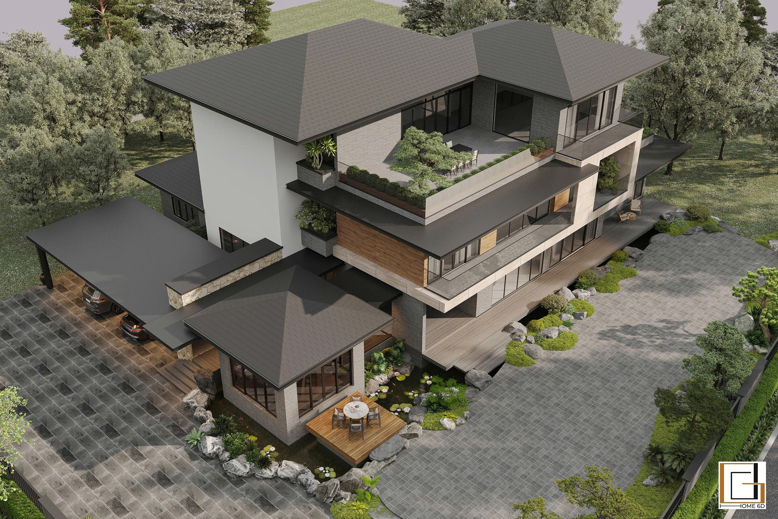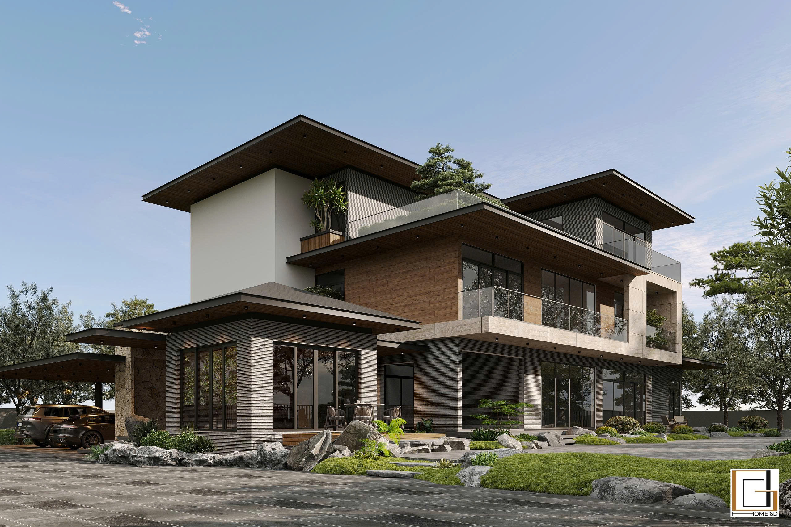 Mẫu thiết kế nhà ở gia đình tại Lập Thạch – Vĩnh Phúc, thuộc chủ đầu tư anh Dương, được thực hiện bởi đội ngũ kiến trúc sư Nhadep 6D, là một minh chứng hoàn hảo cho sự kết hợp đầy nghệ thuật ấy. Với diện tích sàn lên tới 700m², công trình không chỉ gây ấn tượng bởi quy mô đồ sộ mà còn bởi sự tính toán hài hòa trong từng chi tiết thiết kế.