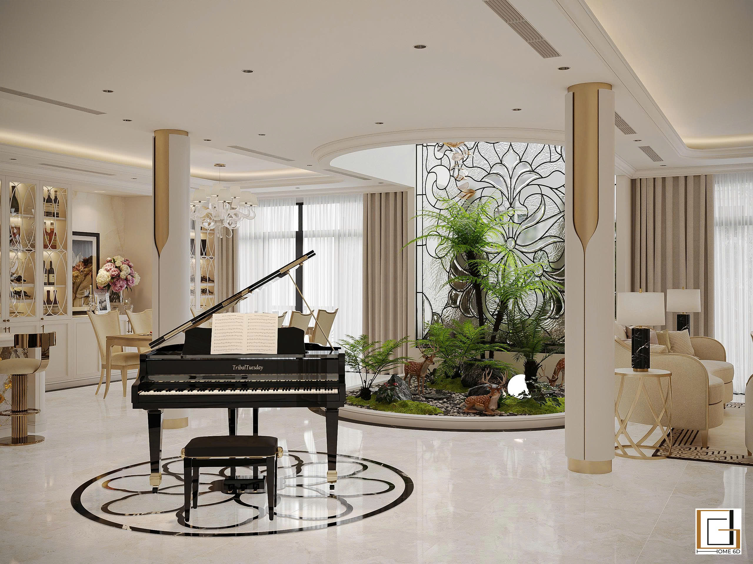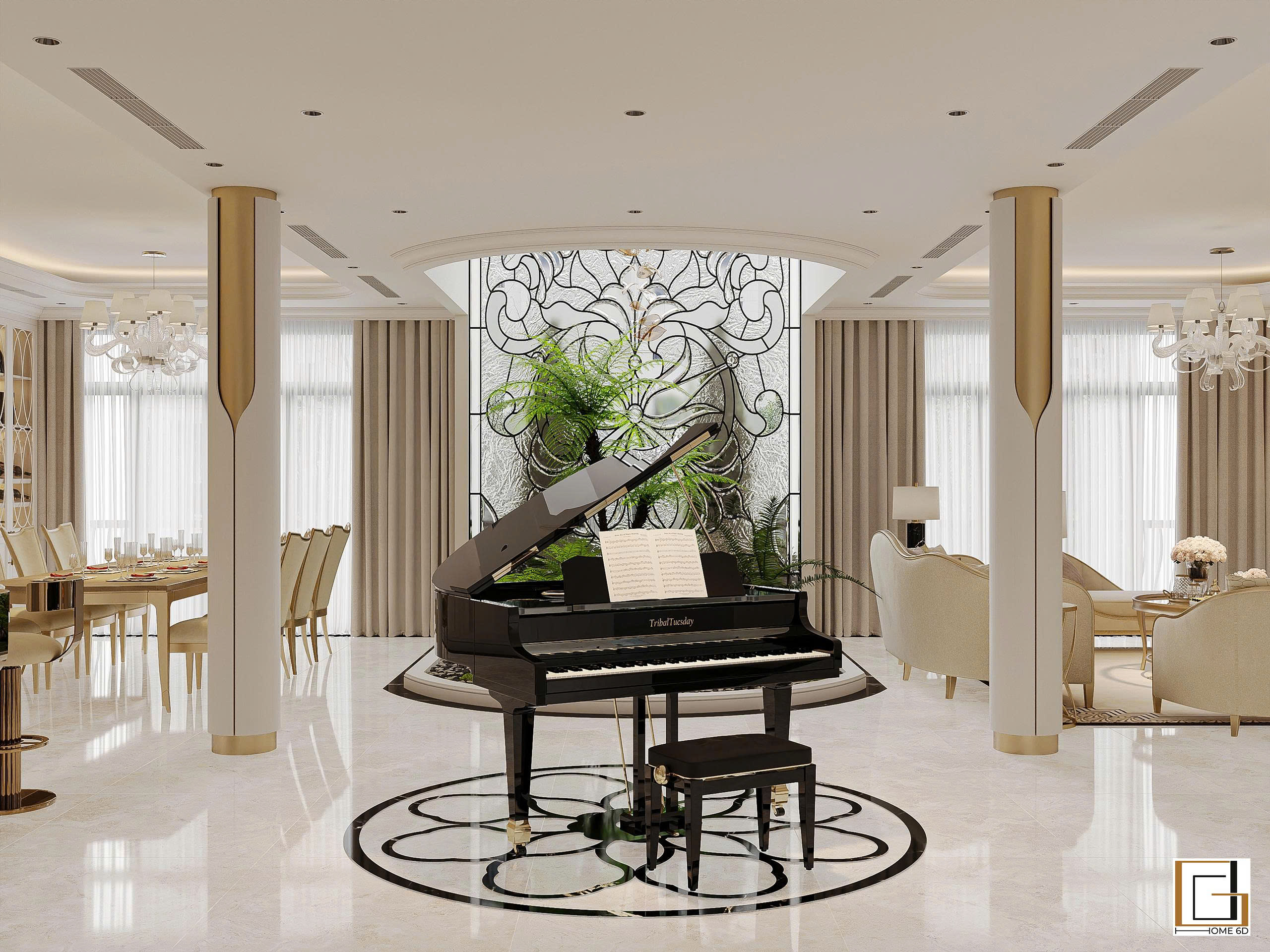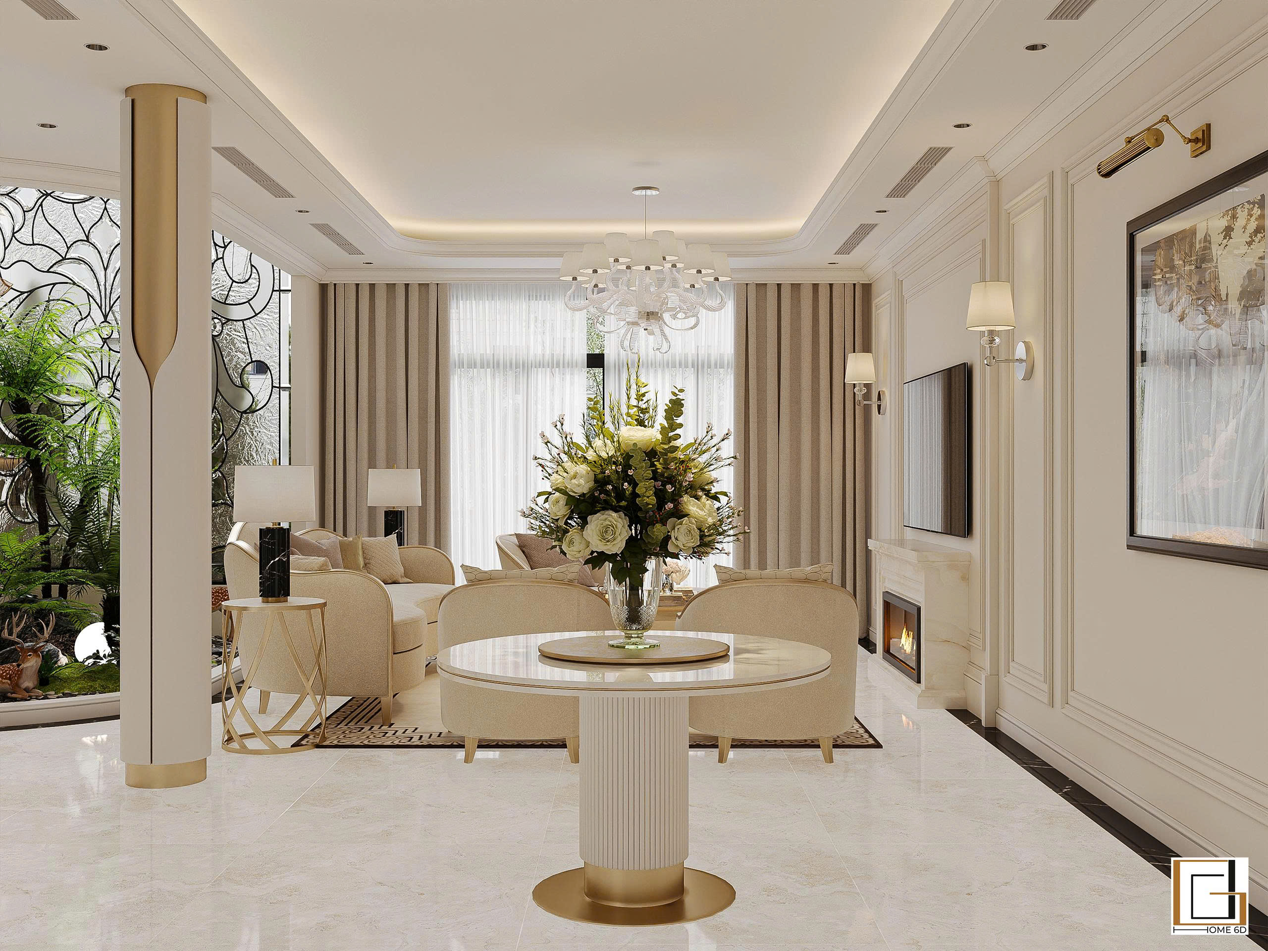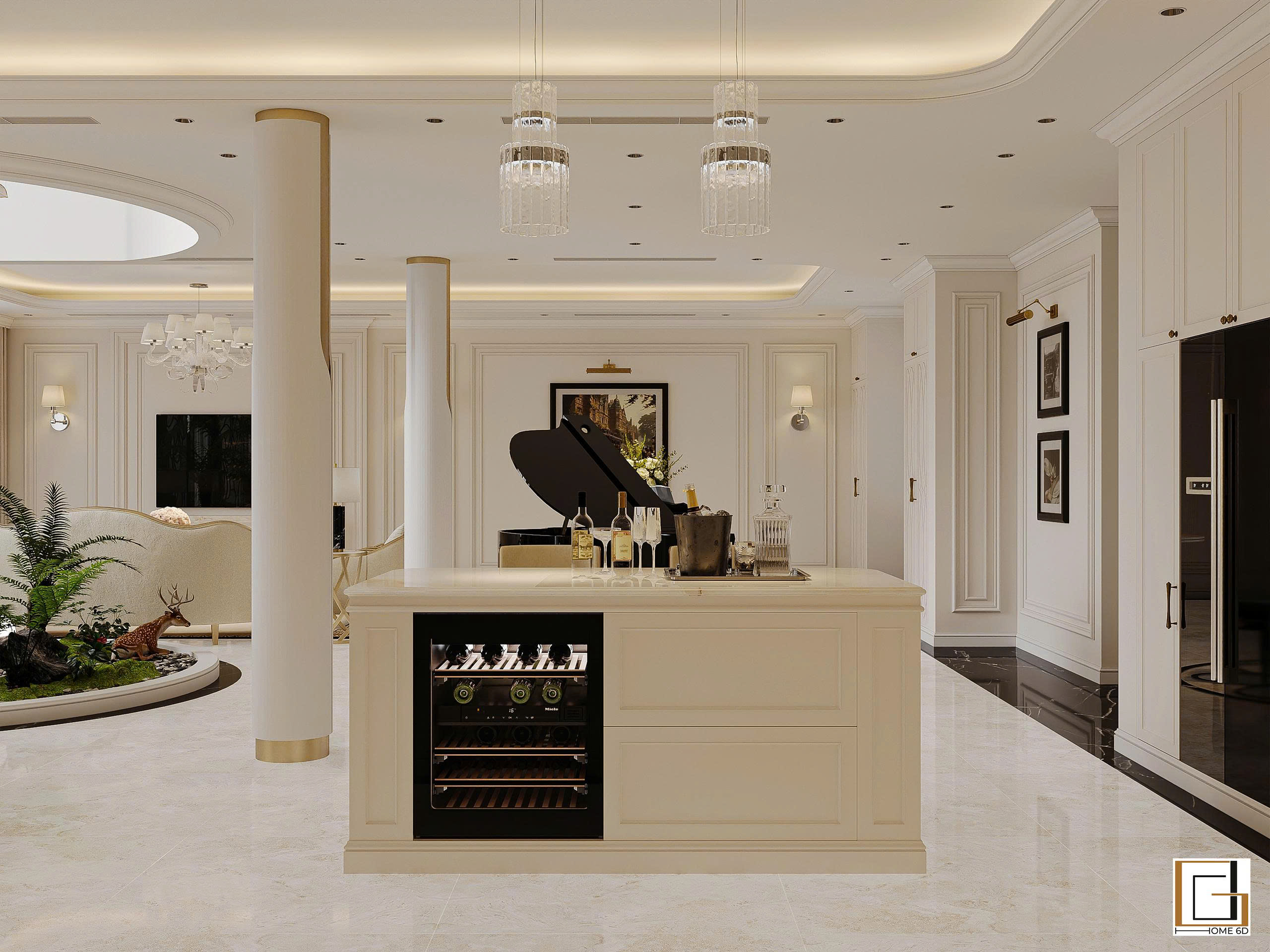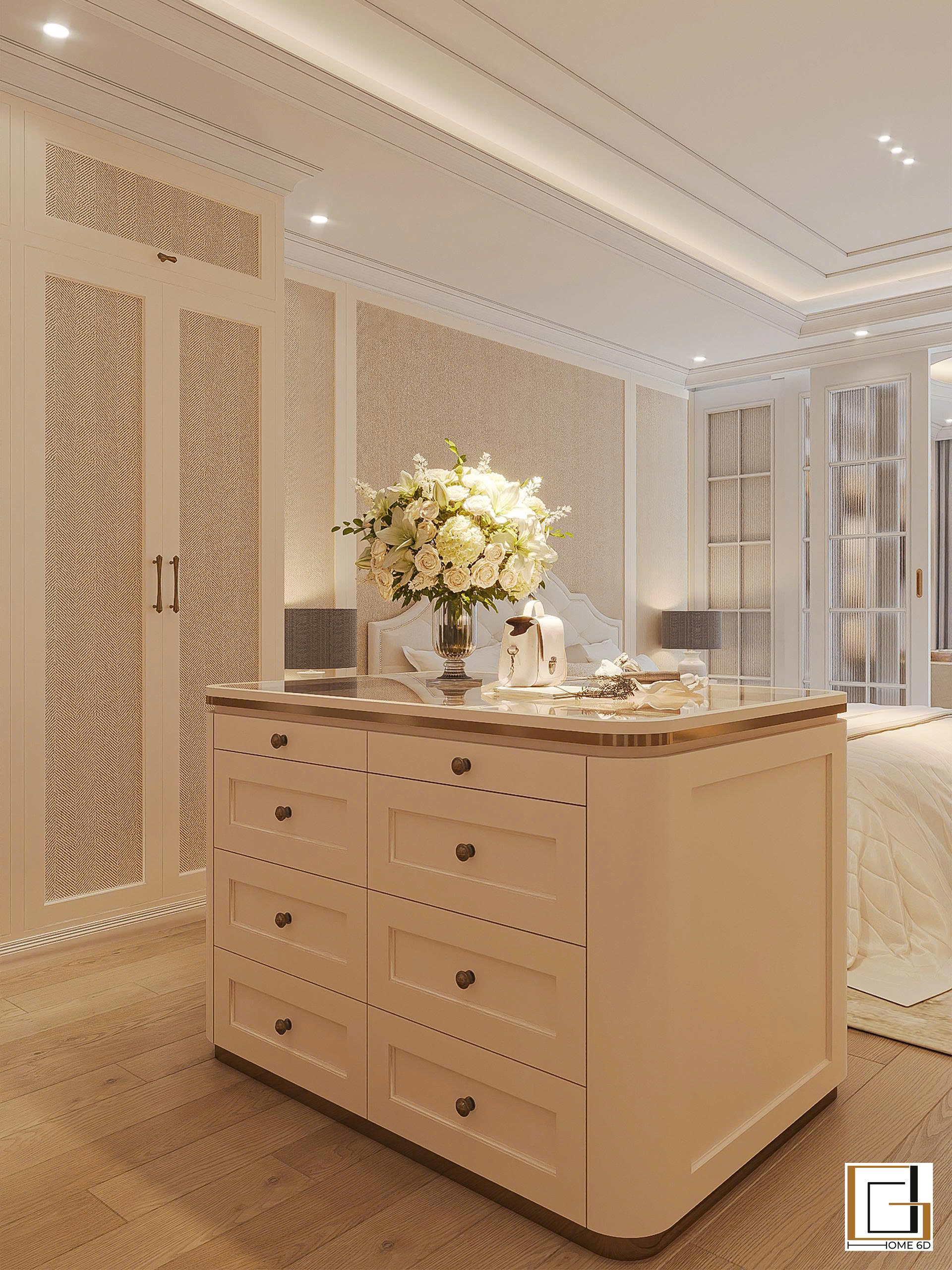 Ngay từ khi đặt chân vào không gian, người xem dễ dàng cảm nhận được vẻ đẹp tinh tế và xa hoa của phong cách Neoclassic. Các kiến trúc sư Nhà đẹp 6D đã vận dụng nhuần nhuyễn những nguyên tắc kinh điển của phong cách này: tỷ lệ cân đối, chi tiết phào chỉ tinh xảo, màu sắc trang nhã cùng cách bố trí không gian hợp lý. Mỗi khu vực chức năng trong căn nhà đều mang một cảm xúc riêng, nhưng vẫn đảm bảo tính liên kết tổng thể, tạo nên một bức tranh nội thất hài hòa, sang trọng mà không phô trương.