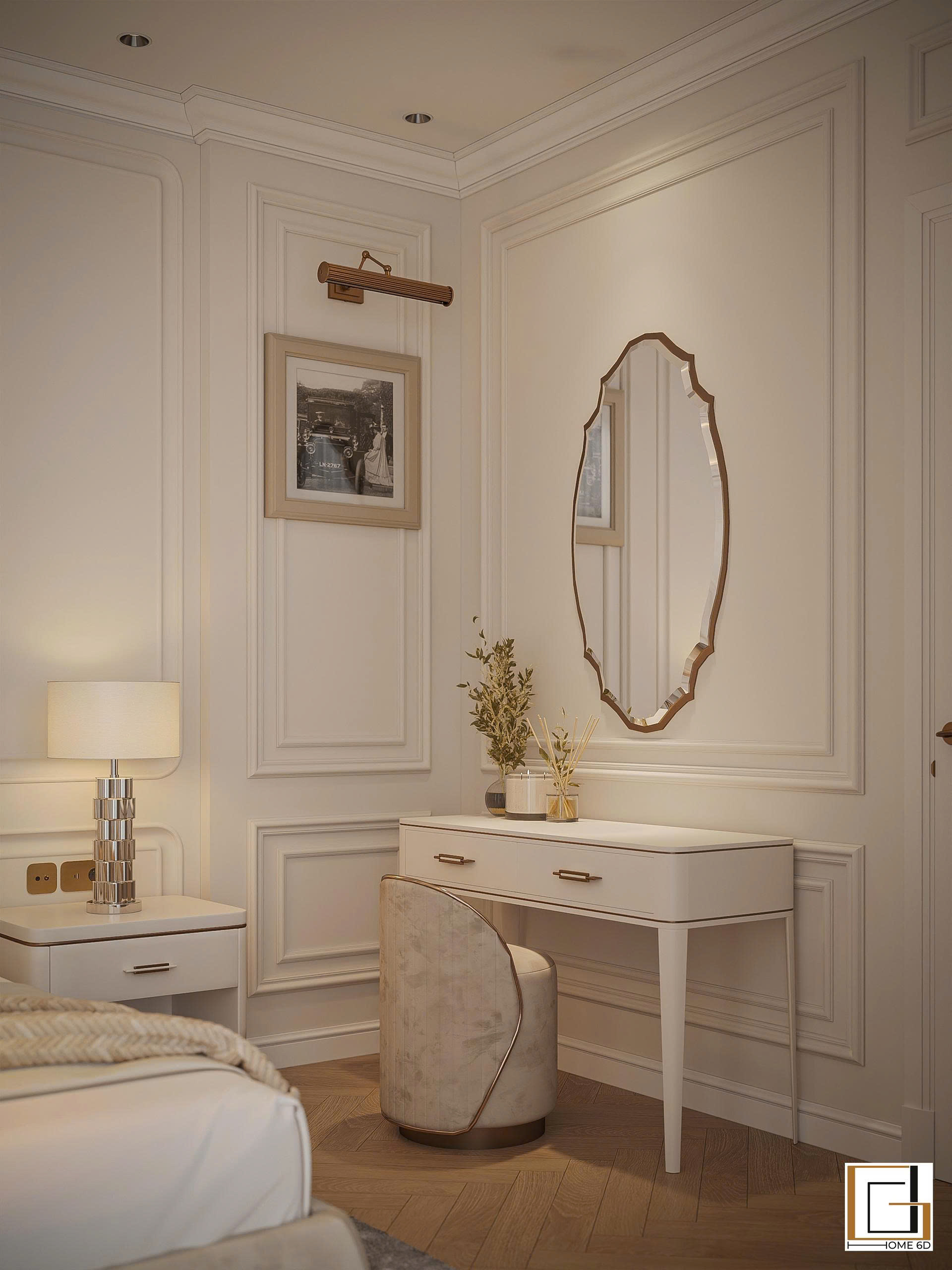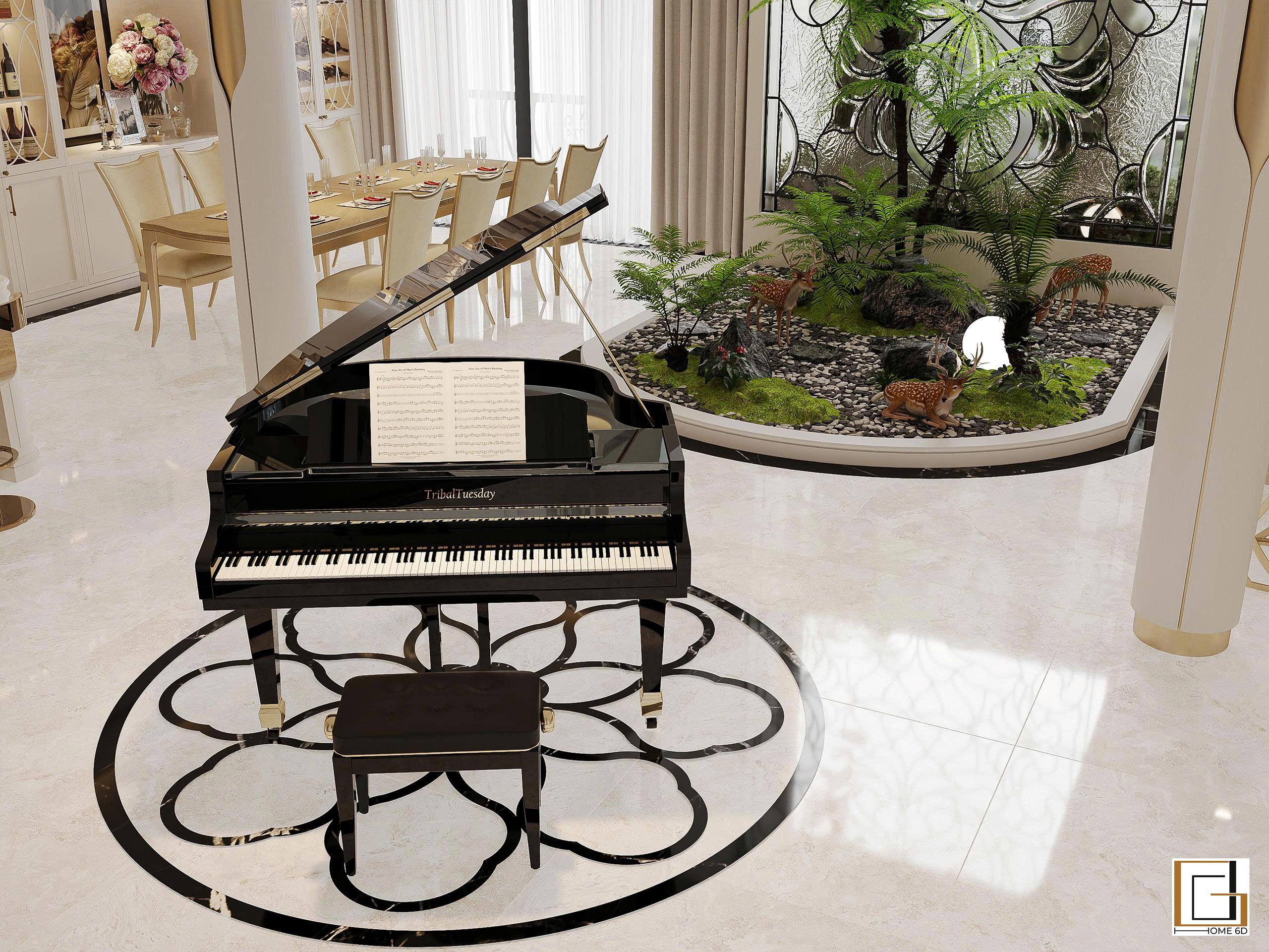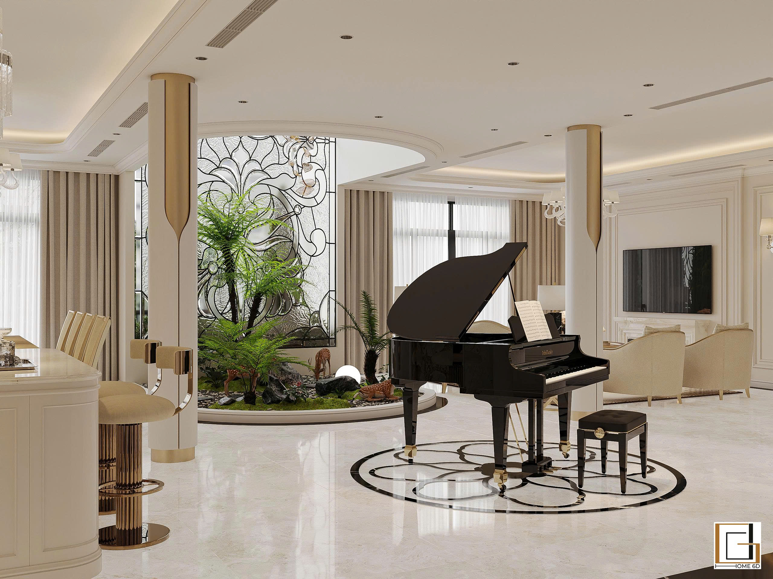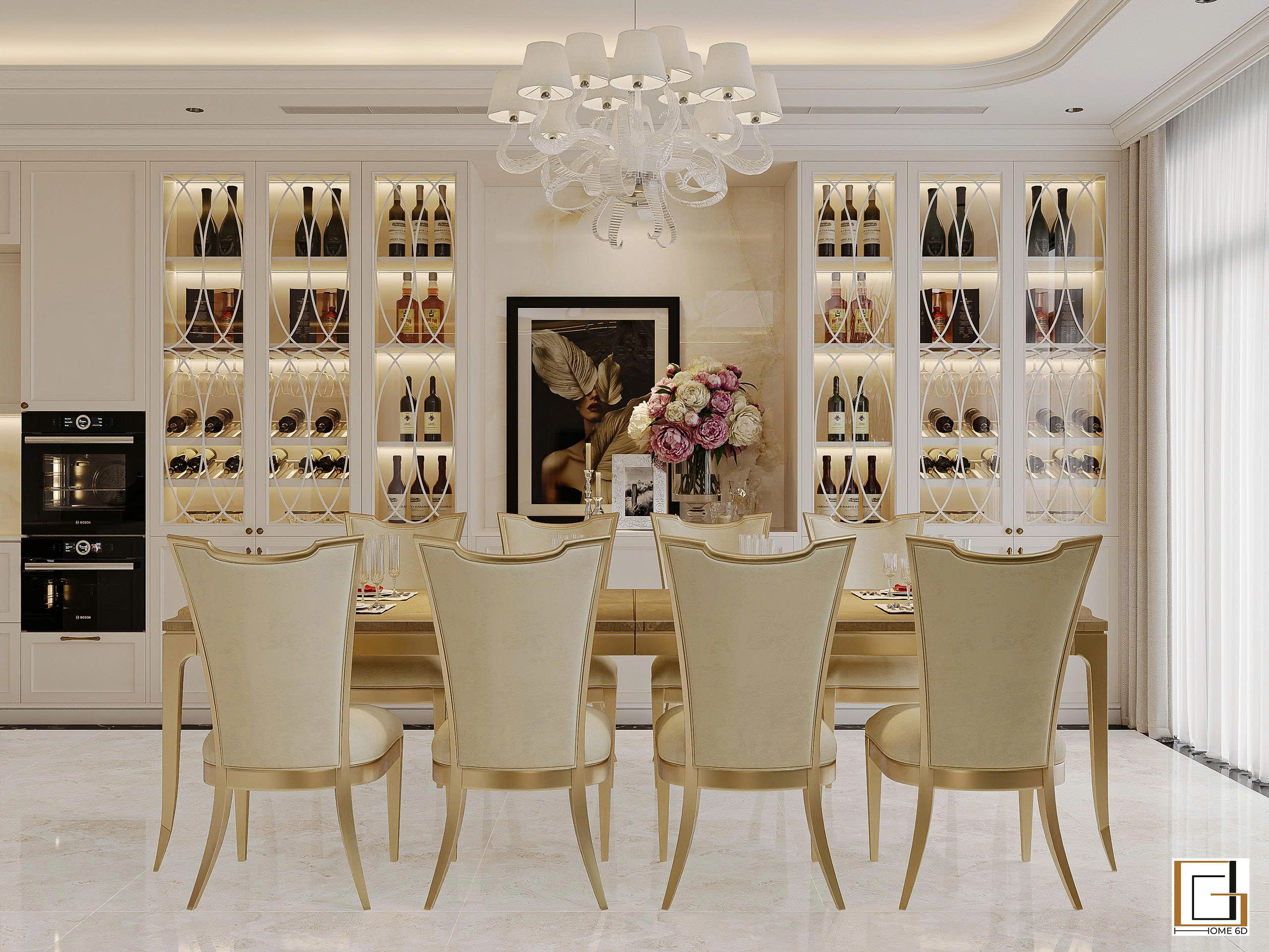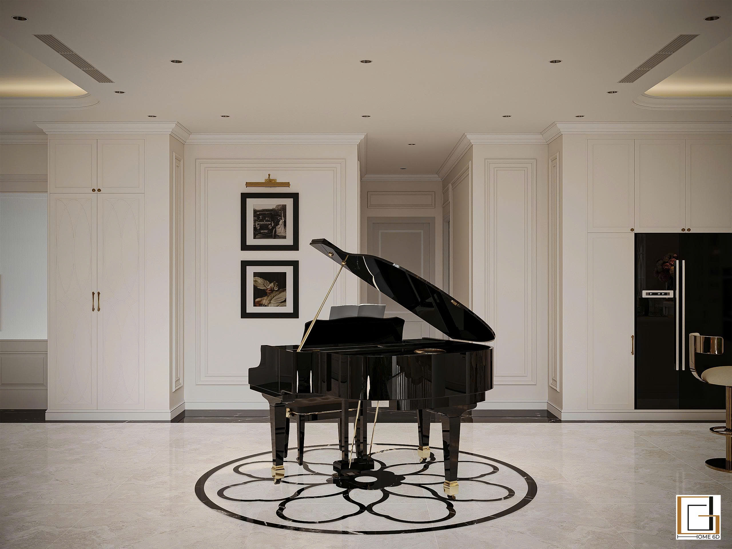 Ngay từ khi đặt chân vào không gian, người xem dễ dàng cảm nhận được vẻ đẹp tinh tế và xa hoa của phong cách Neoclassic. Các kiến trúc sư Nhà đẹp 6D đã vận dụng nhuần nhuyễn những nguyên tắc kinh điển của phong cách này: tỷ lệ cân đối, chi tiết phào chỉ tinh xảo, màu sắc trang nhã cùng cách bố trí không gian hợp lý. Mỗi khu vực chức năng trong căn nhà đều mang một cảm xúc riêng, nhưng vẫn đảm bảo tính liên kết tổng thể, tạo nên một bức tranh nội thất hài hòa, sang trọng mà không phô trương.