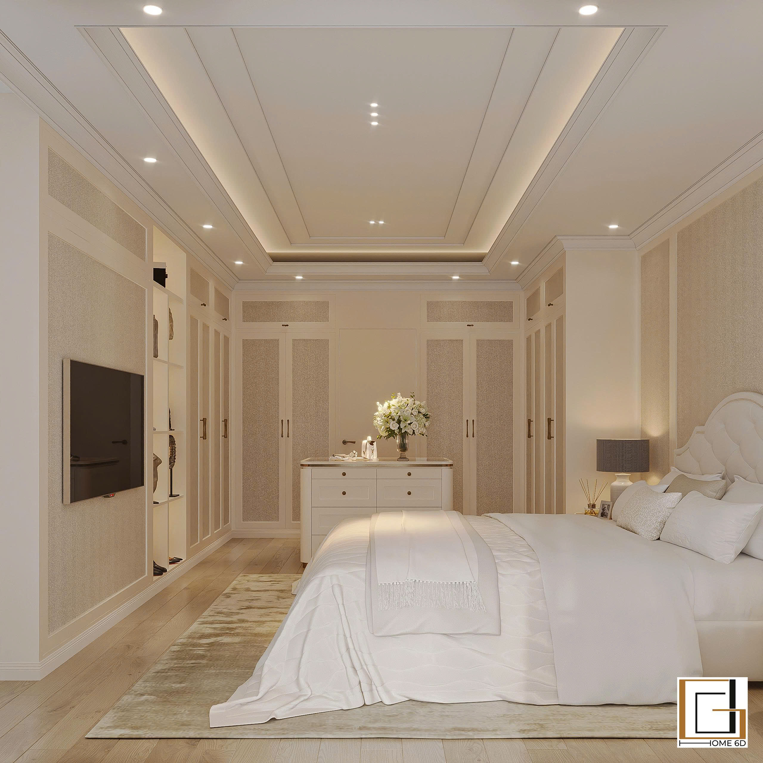 Là không gian riêng tư của vợ chồng chủ đầu tư, phòng ngủ master thể hiện rõ nhất cá tính và đẳng cấp của gia chủ. Thiết kế lấy cảm hứng từ phong cách tân cổ điển Pháp, nhưng được tinh giản để phù hợp với nhịp sống hiện đại.